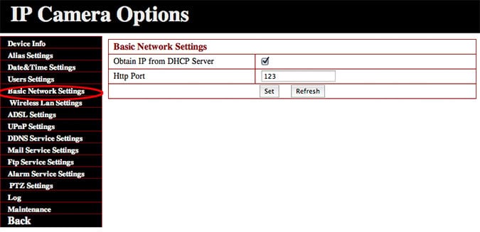 In the same screen, you can also reassign the port on the IP Camera that opens up the web UI. The default factory port is 81. You can keep it at that but for security reason, let’s change the “Http Port” from 81 to 123 (you can change it to whatever number you want). Click on Set to apply the changes. Your camera will reboot itself. If you changed the port number, then you will need to enter the new port number after the IP Camera’s IP address. So in the initial setup, we access the web-based UI at http://192.168.0.11:81. Since we changed the Http Port setting to 123, you’ll need to punch in http://192.168.0.11:123 to resume access. Be sure to wait 30 seconds for the camera to fully reboot itself before proceeding.