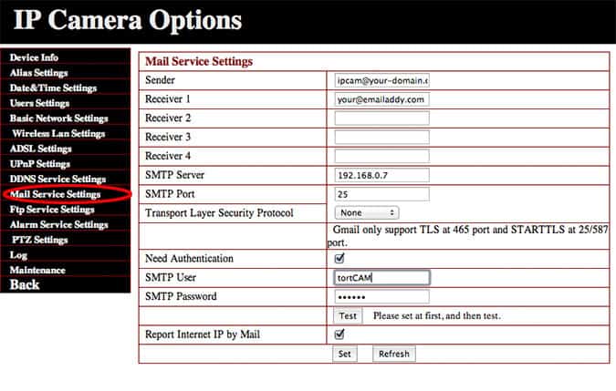Once you’ve entered all the parameters, click on Set and then click on Test. If the IP Camera was able communicate with the SMTP server you’ve specified, it will report “Test Succeeded” and send you an email of its public URL. If not, then it will indicate that the “Test Failed”. One or two parameters is either incorrect or omitted.