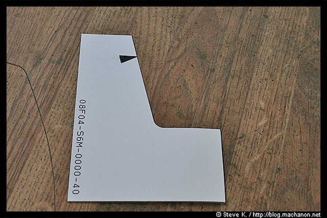 Take the provided template and measure 47mm toward the front of the car, starting from the dead center of the 10mm hole. Mark the measurement with a felt-tip pen (I used a Sharpie):