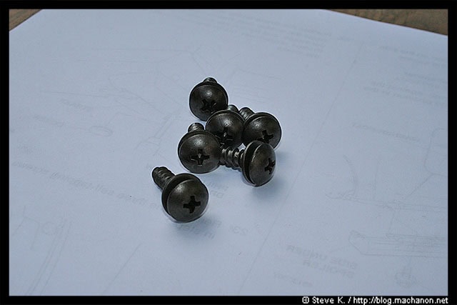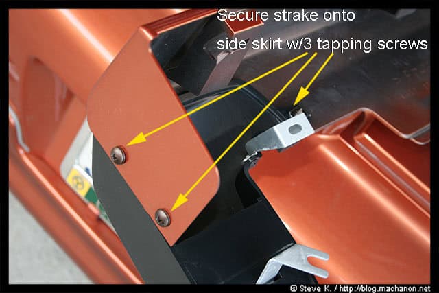 Install the four washer-bolts along the underside of the spoiler, tightening each bolt into a corresponding well-nut you’ve installed earlier. Do not over tighten.