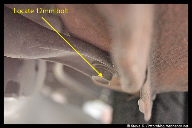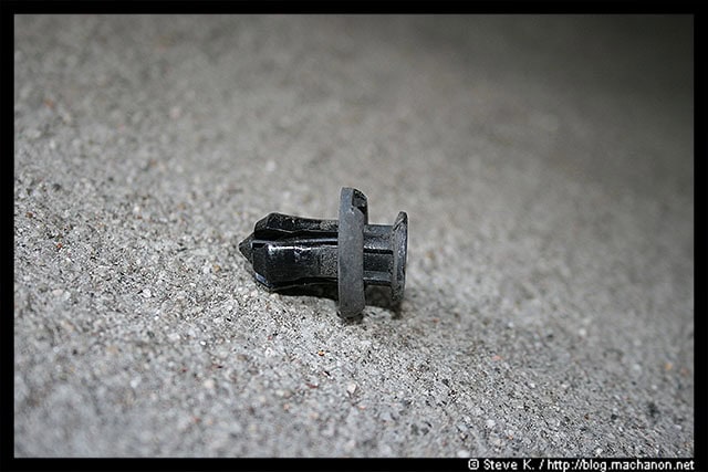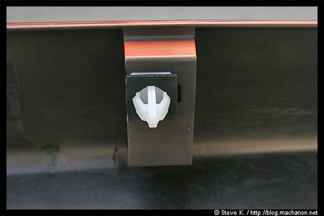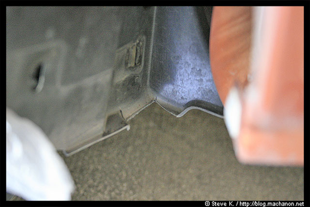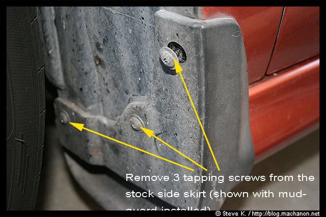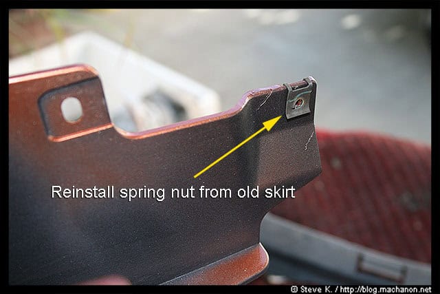 Next, remove the spring nut located at the front of the OEM side skirt. The longest self-tapping screw you’ve removed earlier (of 3), was secured onto this spring nut: