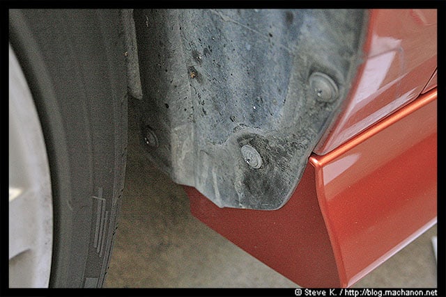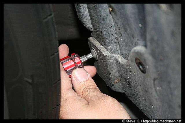 Next, get on your knees and head for the back end of your car where the OEM side skirt was attached. You see a single 10mm hole, you can’t miss it: