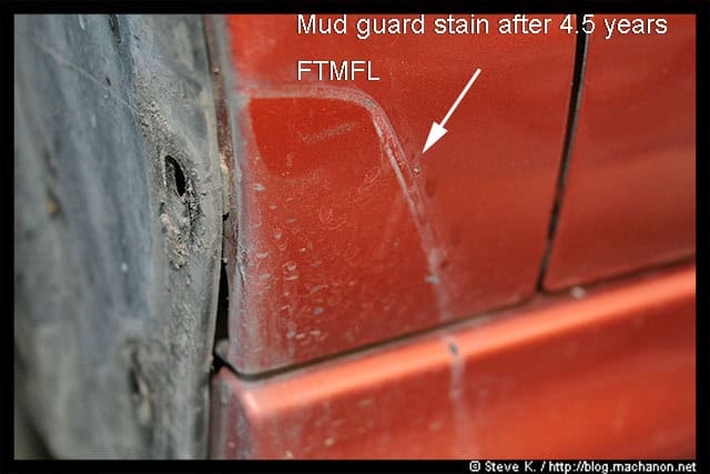 If you have mud guards, you’ll see some stains, gunks and residues. I’ve had mine for about 4.5 years as of this writing. No worries, I’ll show you how to remove them later: