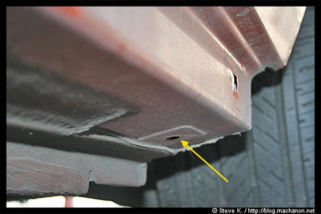 Next, look underneath and along the stock side skirts to see some indentations. It would help if you jack up your car, especially if your car is lowered. I didn’t. This is what you’re looking for: