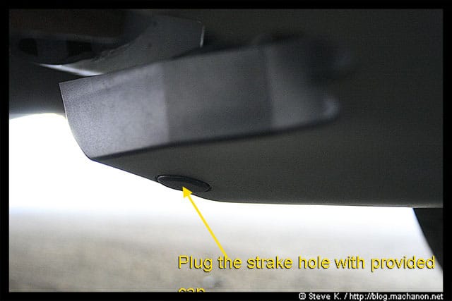 Plug up the hole on the left strake with one of the provided cover: