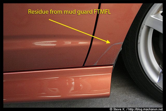 If you’ve had mud guard installed and had to remove them for this install, like I did, then you might run into a few blemishes left behind by the mud guards: