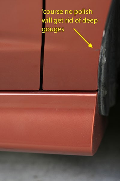 Keep in mind that you can’t buff deep gouges and scratches away. Repeat for the other front fender and the two rear fender where your OEM side skirt sat.