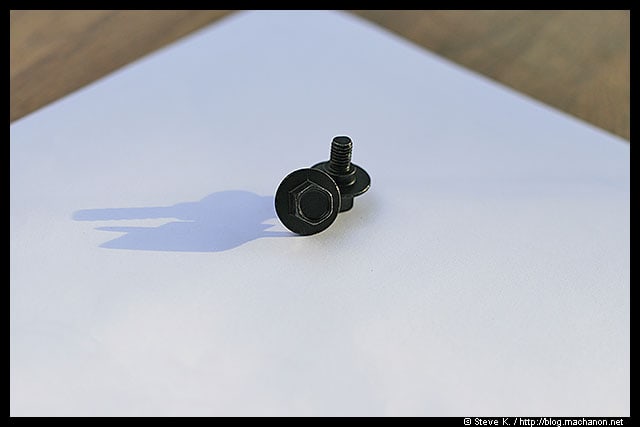 Install the 3 square bolts onto the corresponding slots on the rear lip spoiler. You can find these slots on the inside area of the rear lip spoiler that wraps around the lower part of the license plate holder on the rear bumper. Carefully overlay the lip spoiler onto the bumper.