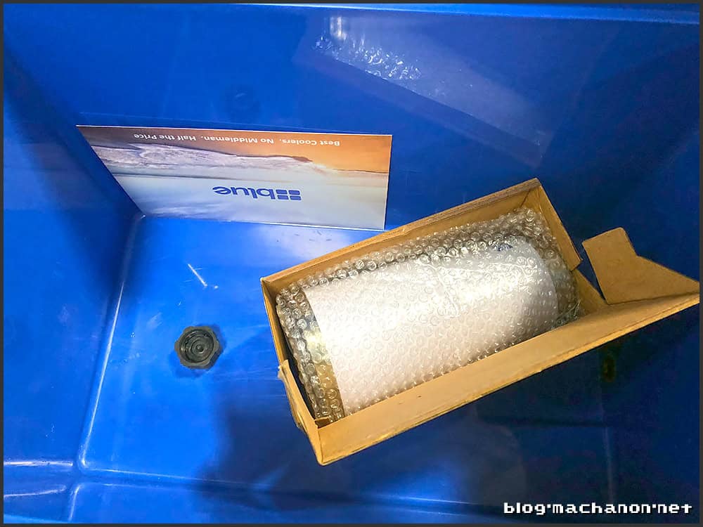 No fancy re-packaging means minimal in marketing costs. The 30 oz. tumbler was bubble wrapped in a box of its own inside the cooler. The extra drain plug was stashed inside the cooler.