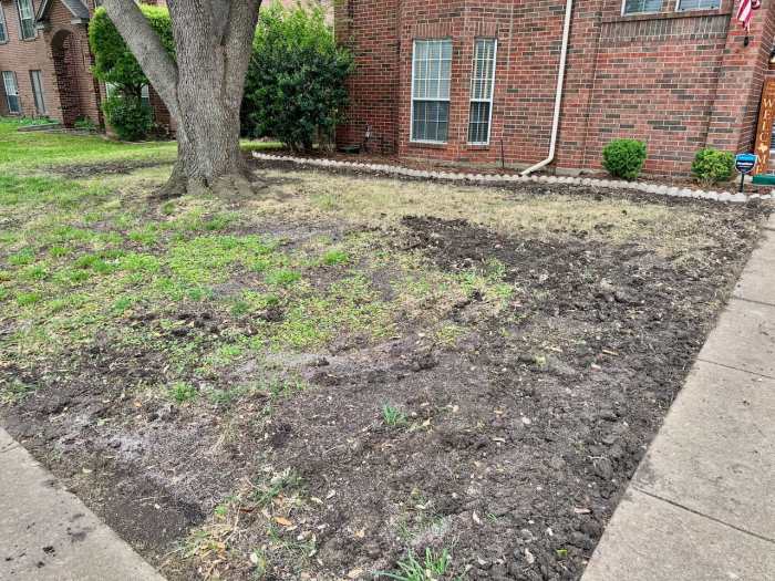 All of our major plans were set back by about year and we did not start populating our house with furnitures until April of 2024 (we arrived in Texas on May 2023). Fast forward two years (or exactly a month short of two years), we finally begin rehabilitation of our front yard. We started the process by removing one of two live oak trees from our front yard. We heard from two of our neighbors that the previous owner of our home attempted to plant zoysia grass on the front yard, “he hauled in an 18-wheeler full of zoysia sods,” as one of them put it, only for it to die off by the end of one season. The reason was obvious and it was due to the heavy shading of the live oak trees. We solved this issue by having one removed and the second tree pruned and limbed-up. The result is nearly sunlight exposure for our front yard.